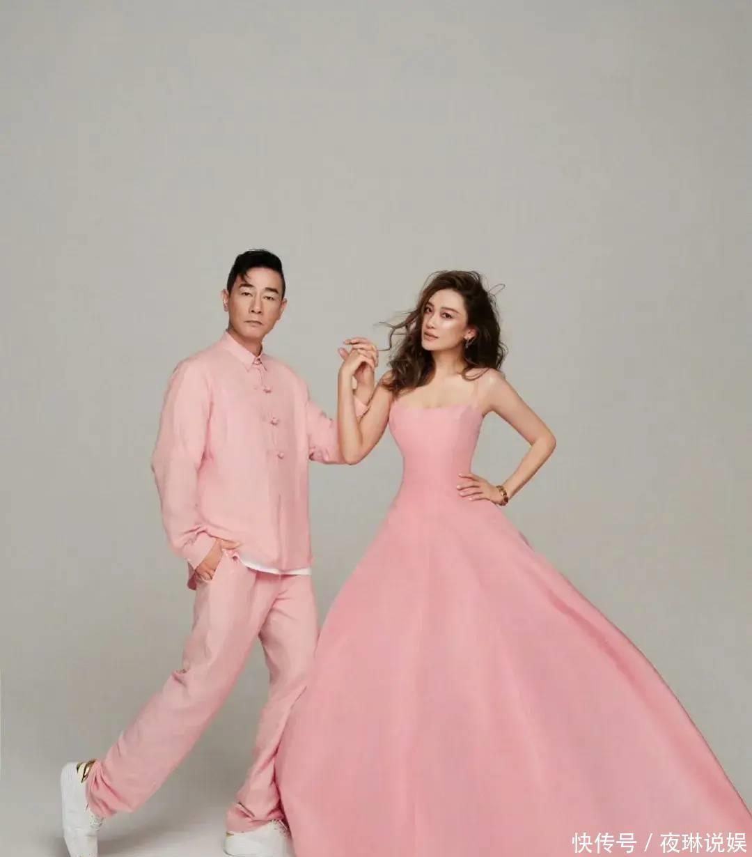 但穿起粉色西装套装的陈小春,比拟细君应采儿一册肃穆的拍照,看起来就有点“偷”感,有点逗趣,有点搞怪。