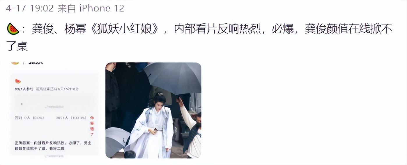 龚俊是凭借《江山令》大火的,他现时的处境和李现特殊像,《亲爱的在意的》播出后,李现万古期没拿出高质料且得到不雅众认同的作品,直到《去有风的所在》播出,才让网上的公论隐藏,如若《狐妖小红娘·月红篇》爆了,这部剧对杨幂的加成并不大,因为杨幂现时正处于转型,而且她照旧手抓多部古装爆剧,对龚俊来说,如若这部剧爆了,有不错撤消网友吐槽他拿不出高质料作品的言论。