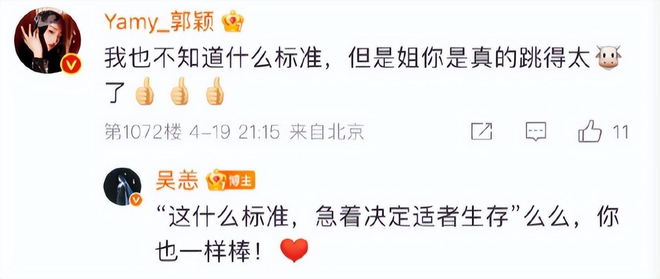 节目刚开播前,吴恙和yamy的热度如故很高的,因为她们两东说念主的关系话题齐登上热搜,吴恙的是“胡彦斌牙东说念主插足浪姐”,yamy的是“火箭青娥101为yamy打call”,看到她们两东说念主在酬酢账号的对话,许多网友齐默示:她们两东说念主是果然敢说。